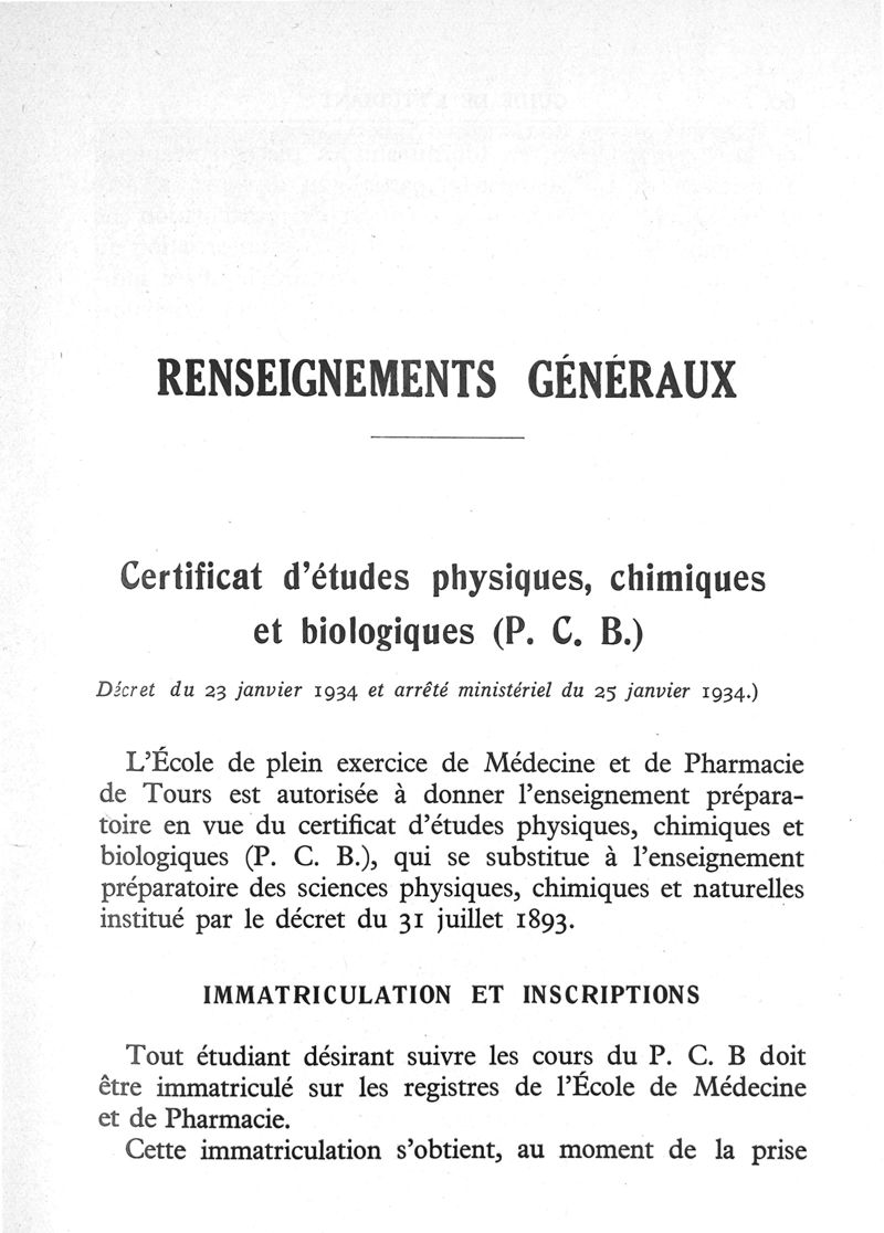 École de plein exercice de médecine et de pharmacie de Tours (Université de Poitiers)(Editeur scientifique) / Guillaume-Louis, Paul / Chollet, Louis.