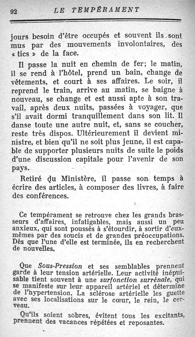 Le tempérament et ses troubles. Les glandes endocrines.