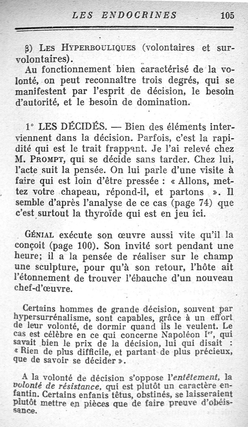 Le tempérament et ses troubles. Les glandes endocrines.