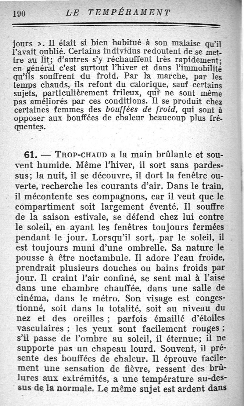 Le tempérament et ses troubles. Les glandes endocrines.
