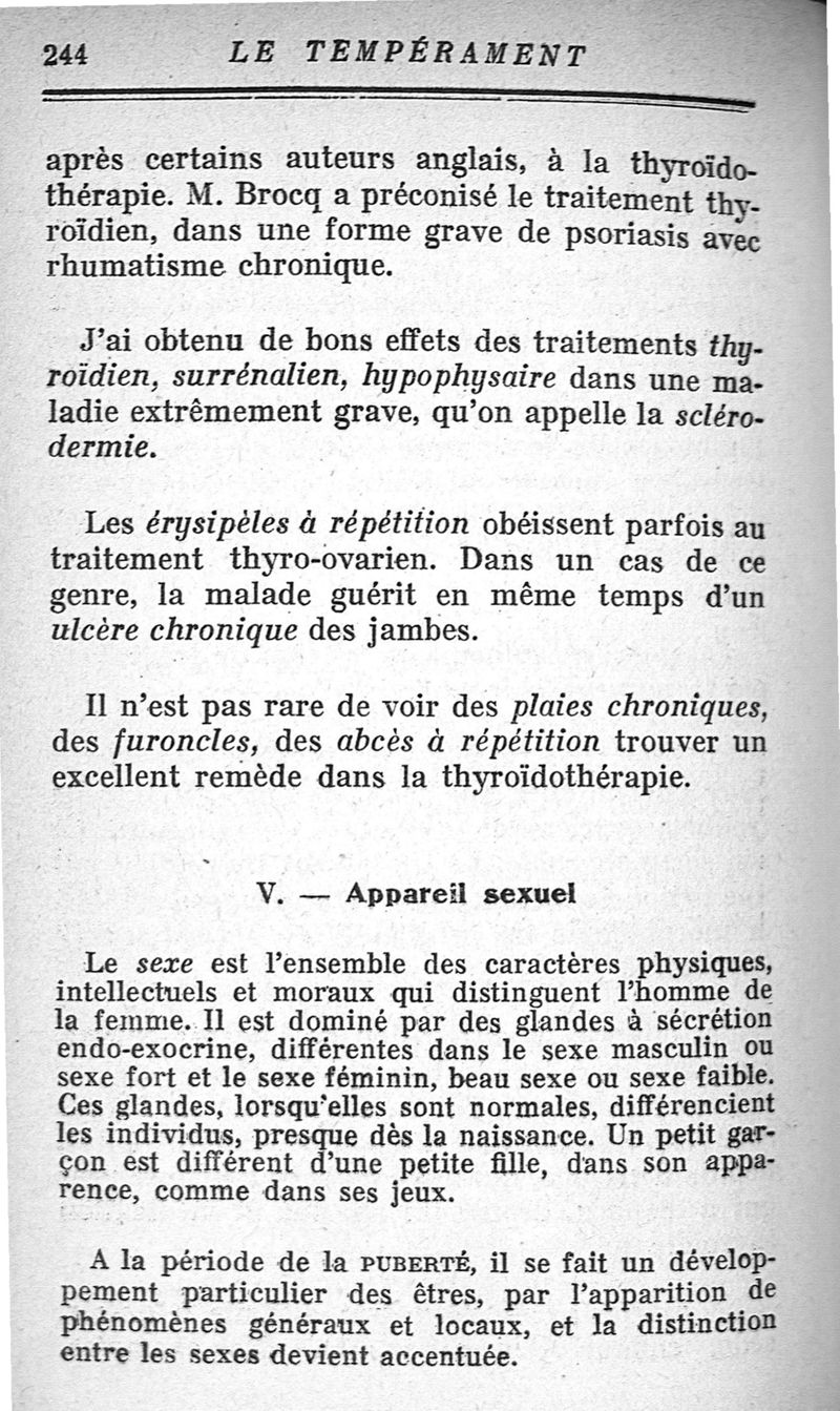 Le tempérament et ses troubles. Les glandes endocrines.