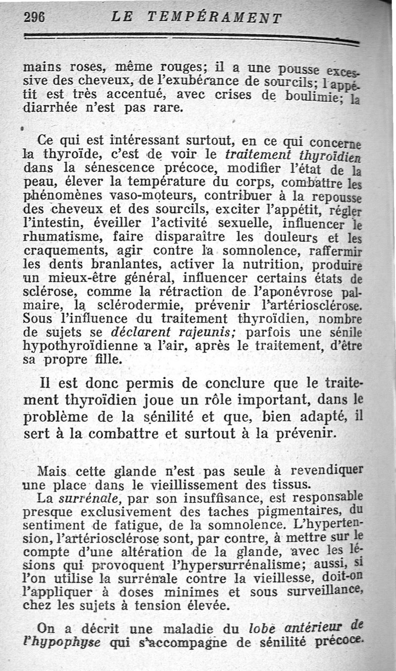 Le tempérament et ses troubles. Les glandes endocrines.