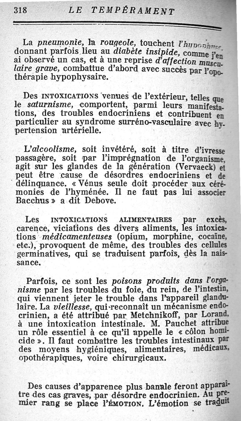 Le tempérament et ses troubles. Les glandes endocrines.