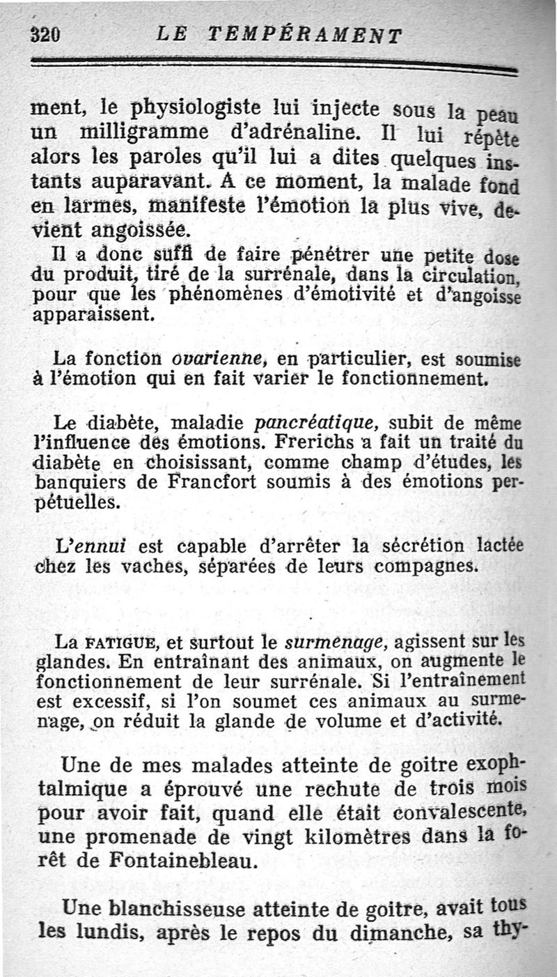 Le tempérament et ses troubles. Les glandes endocrines.