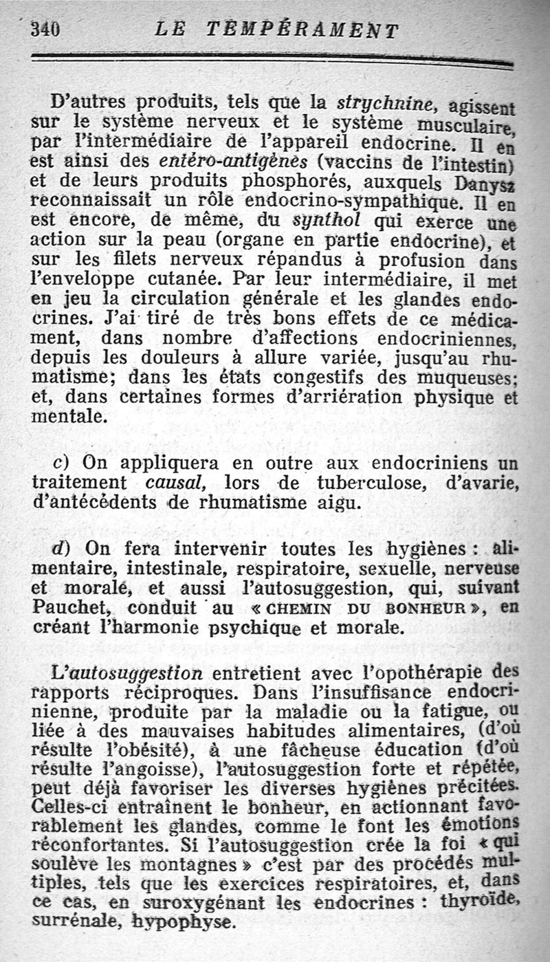 Le tempérament et ses troubles. Les glandes endocrines.