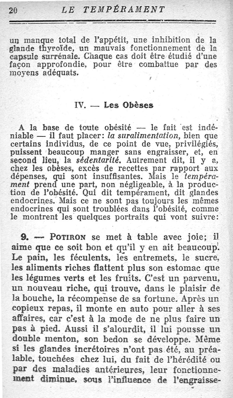 Le tempérament et ses troubles. Les glandes endocrines.