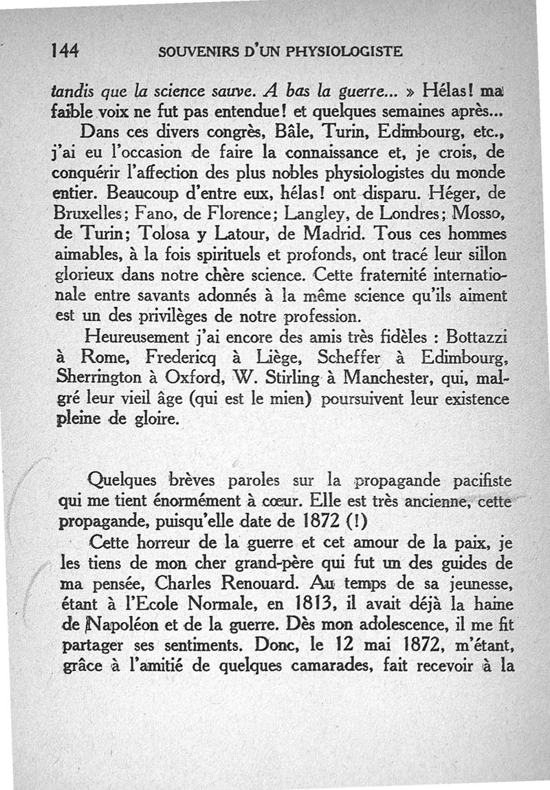 Souvenirs d'un physiologiste