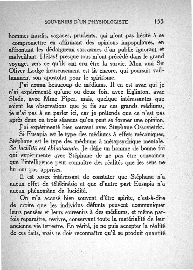 Souvenirs d'un physiologiste