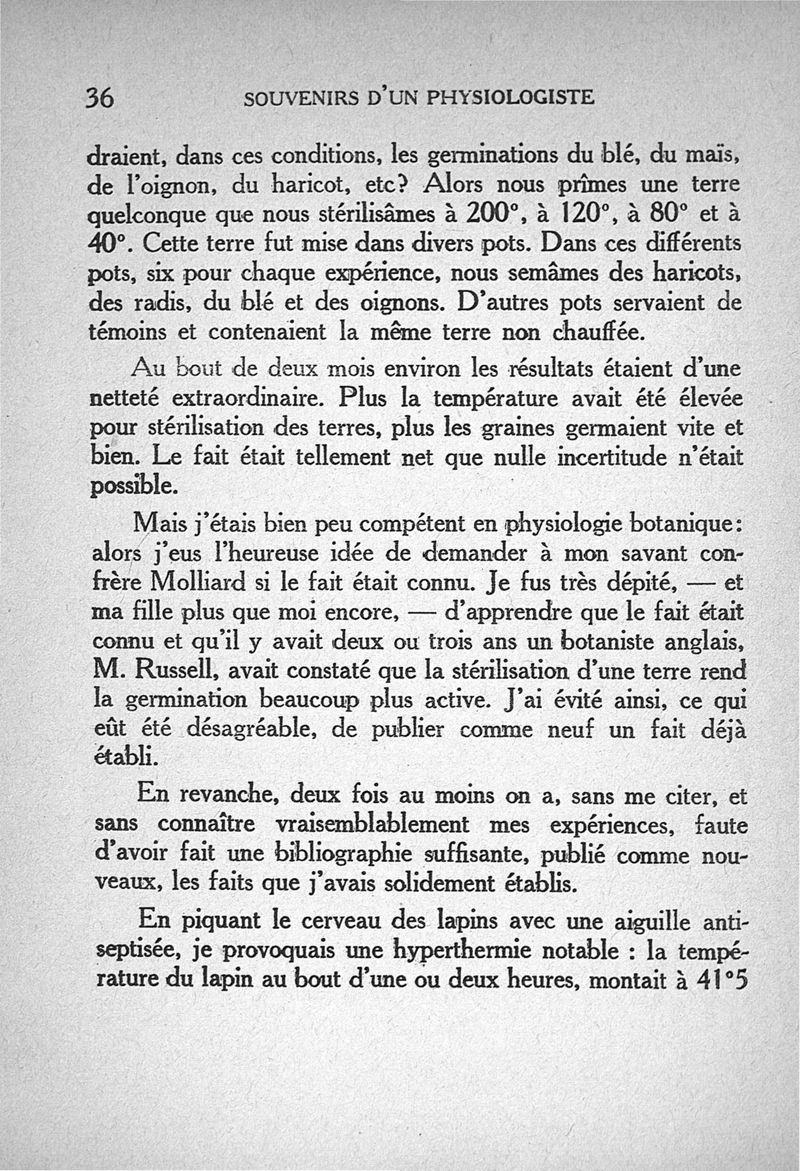 Souvenirs d'un physiologiste