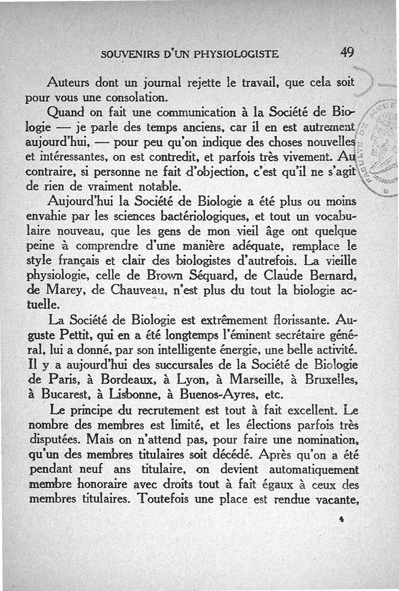 Souvenirs d'un physiologiste