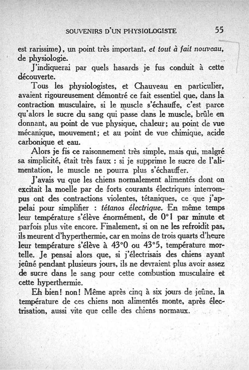 Souvenirs d'un physiologiste