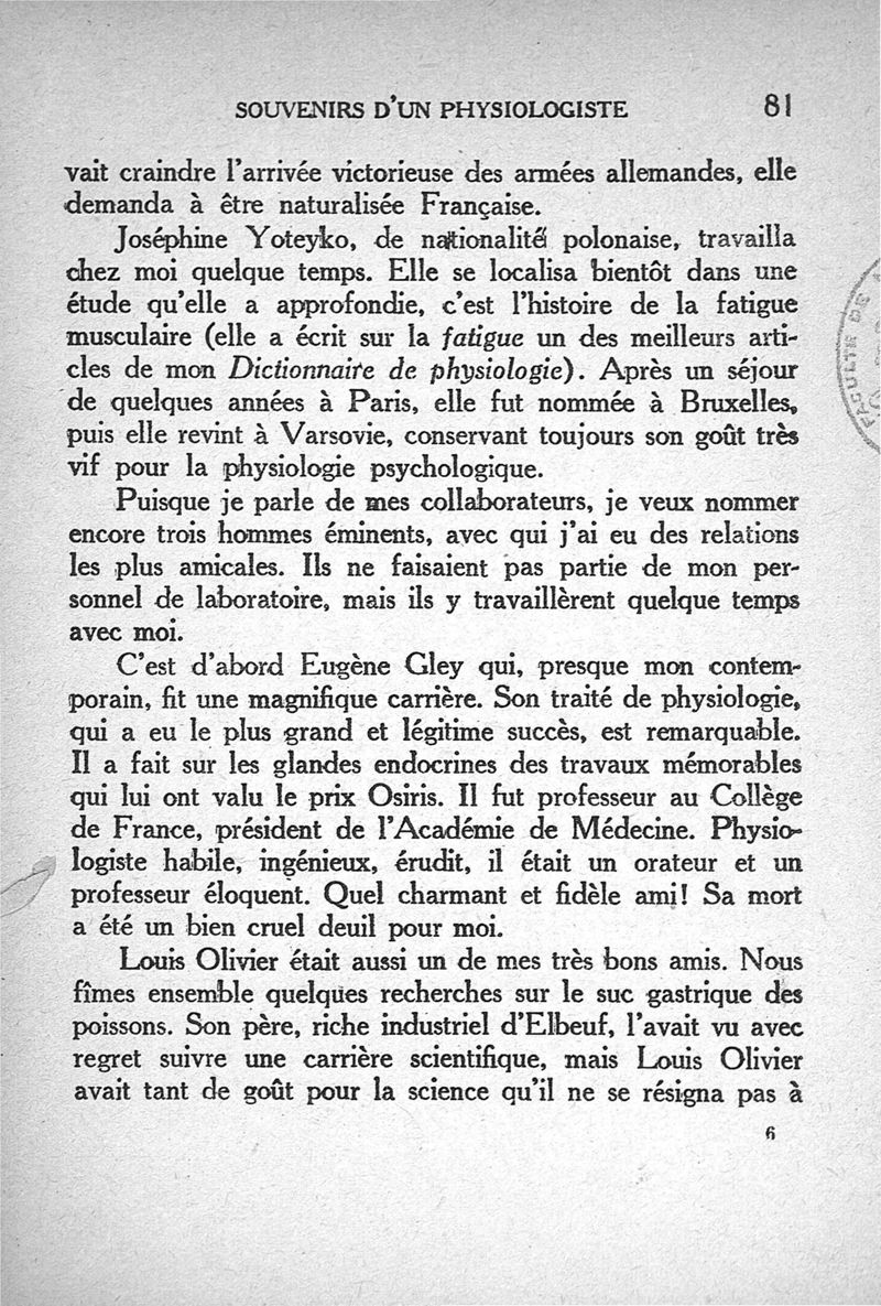 Souvenirs d'un physiologiste