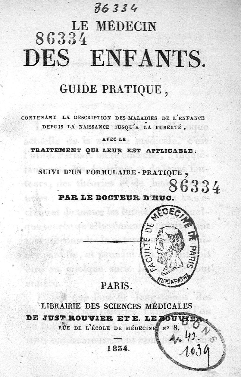 Paris : Librairie des sciences médicales de Just Rouvier et E. Le Rouvier, 1834.