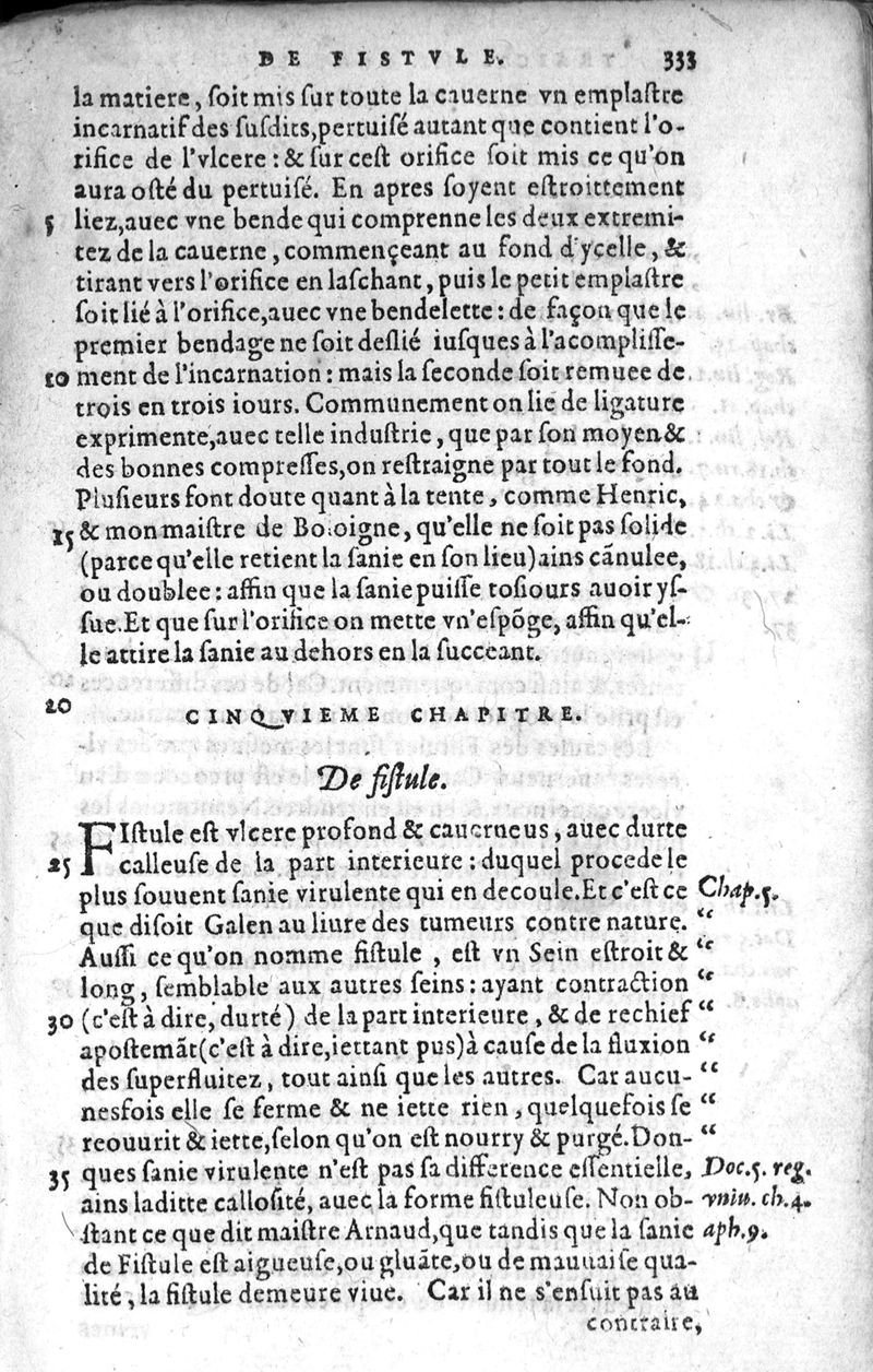 La grande chirurgie de M. Gui de Chauliac, Medecin tres-fameux de l’Université de Montpellier, composée l’an de grace 1363. Restituee nouvellement a sa dignité, par M. Laurens Joubert, Medecin ordinaire du Roy, et du Roy de Navarre, premier Docteur regent stipendié, chancelier et Juge de ladicte Université. Voyez au prochain feuillet, ce que M. Joubert à faict (outre sa nouvelle traduction) et fourny du sien, en recognoissant cest’ œuvre