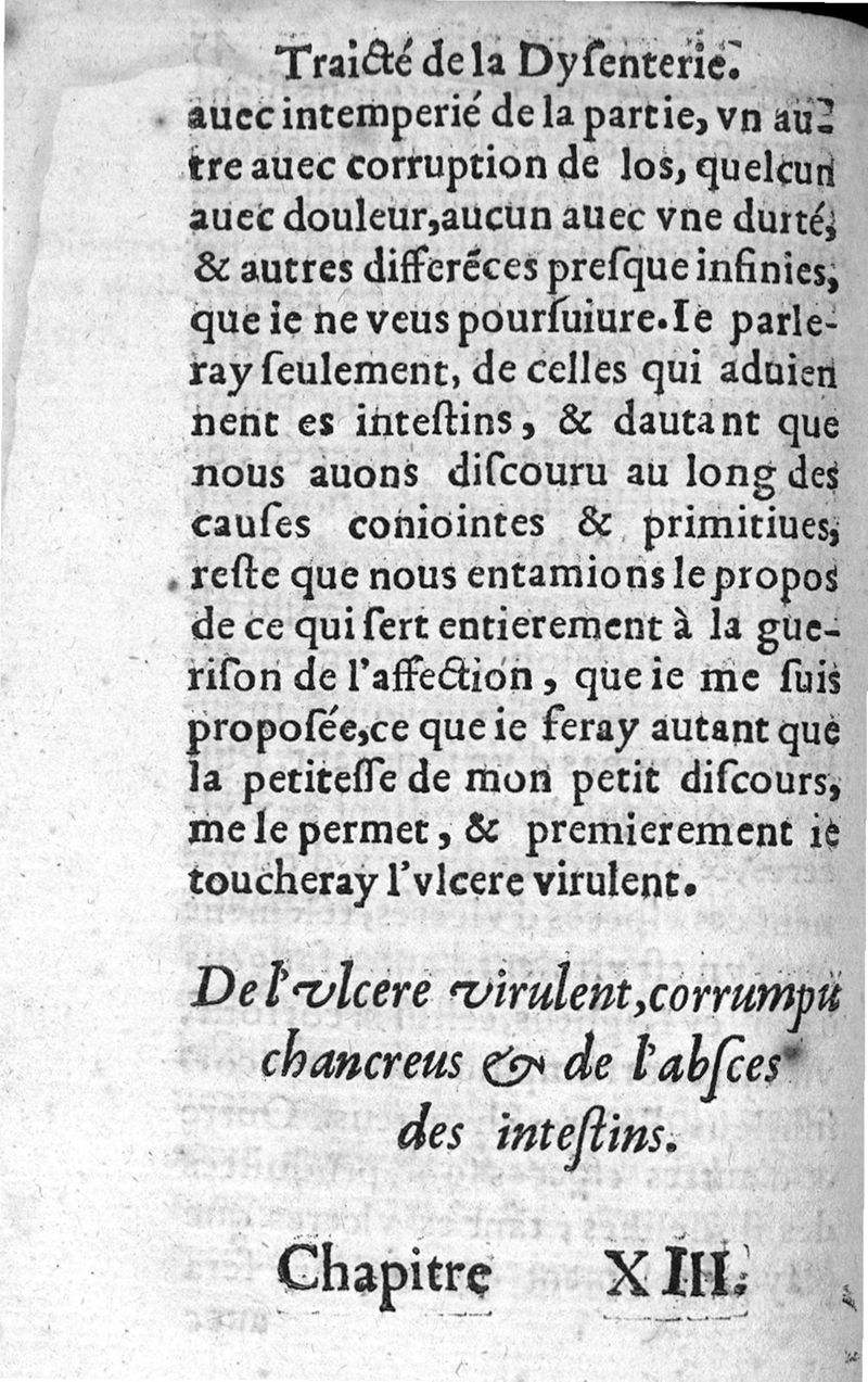Traicté de la dysenterie, et cure d’icelle, divisé en deux parties : l’une contenant la maladie, Causes, et Symptomes d’icelle : l’autre la Curation. Composé par Guillaume Souviros, Docteur en la faculté de Medecine de Montpellier, et Medecin en Tolose,