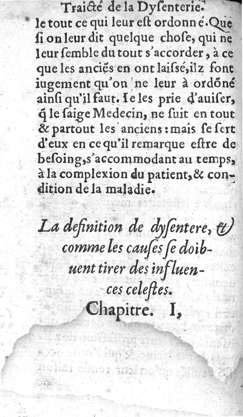 Traicté de la dysenterie, et cure d’icelle, divisé en deux parties : l’une contenant la maladie, Causes, et Symptomes d’icelle : l’autre la Curation. Composé par Guillaume Souviros, Docteur en la faculté de Medecine de Montpellier, et Medecin en Tolose,