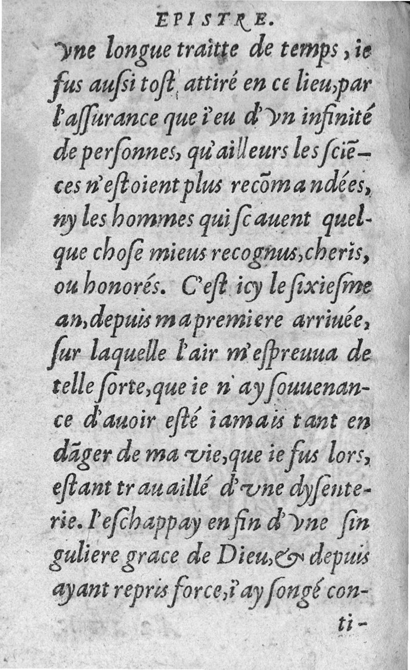 Traicté de la dysenterie, et cure d’icelle, divisé en deux parties : l’une contenant la maladie, Causes, et Symptomes d’icelle : l’autre la Curation. Composé par Guillaume Souviros, Docteur en la faculté de Medecine de Montpellier, et Medecin en Tolose,
