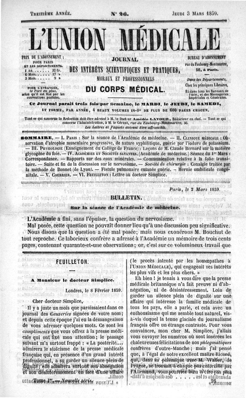 1859, Nouvelle série, n° 01. -