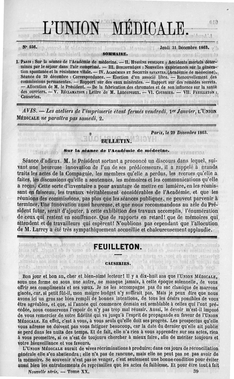 1863, Nouvelle série, n° 20. -