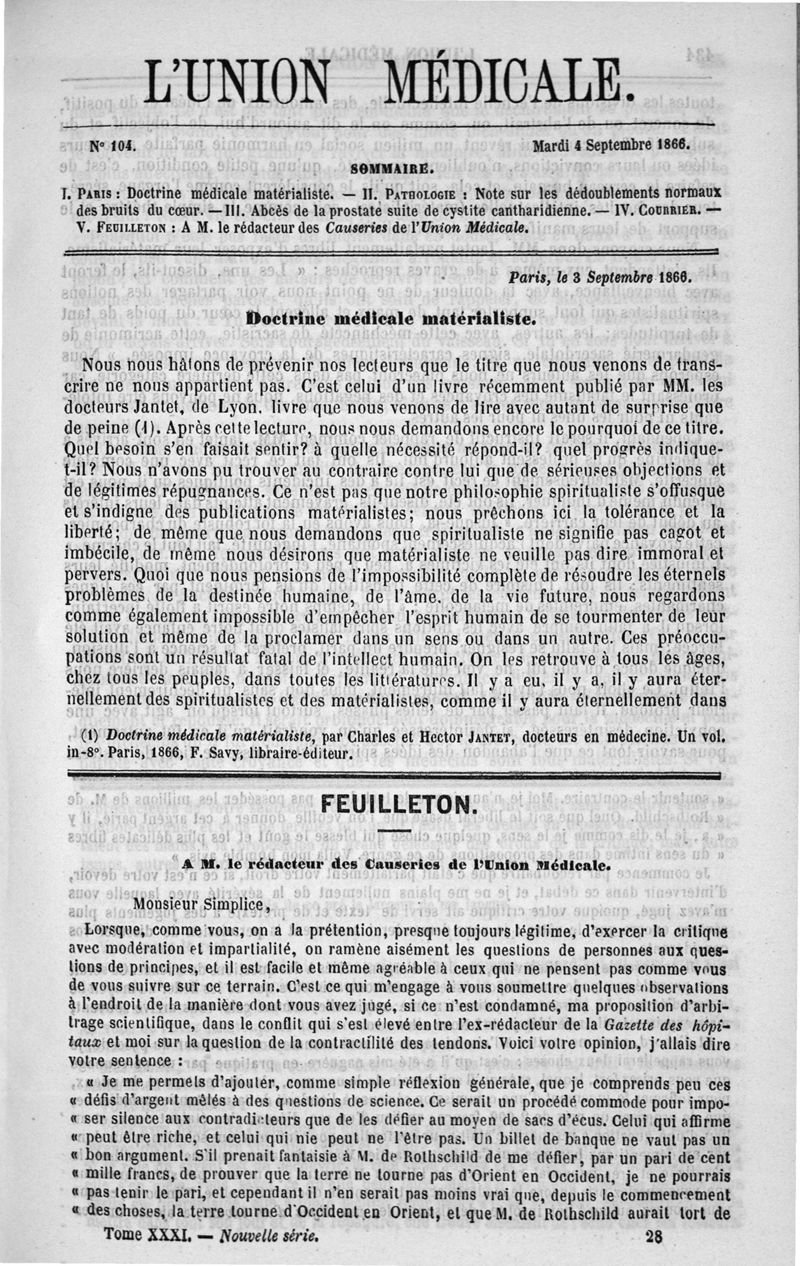 1866, Nouvelle série, n° 31. -