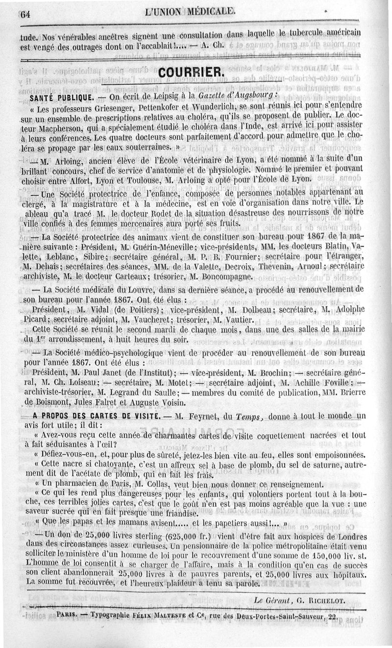 1867, Troisième série, n° 01. -