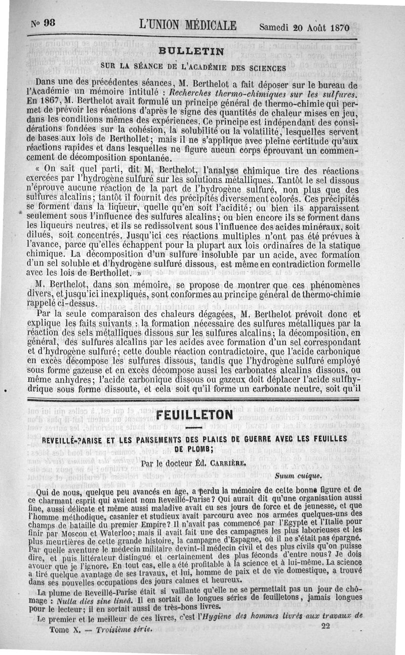 1870, Troisième série, n° 10. -