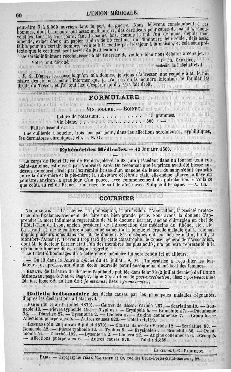 1870, Troisième série, n° 10. -