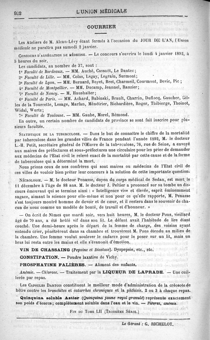 1891, Troisième série, n° 52. -
