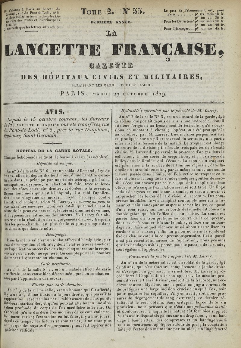 1829, (23 juin 1829 - 2 février 1830), volume 2. -