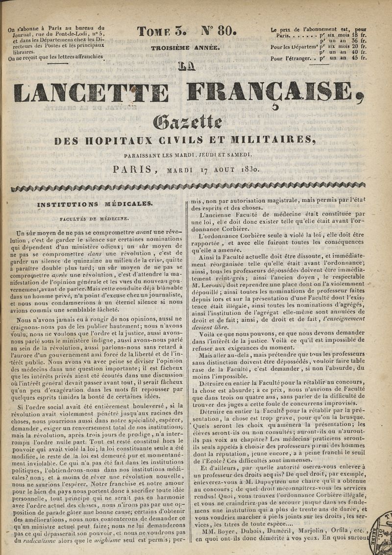 1830x03, (11 février 1830 - 2 octobre 1830), volume 3. -