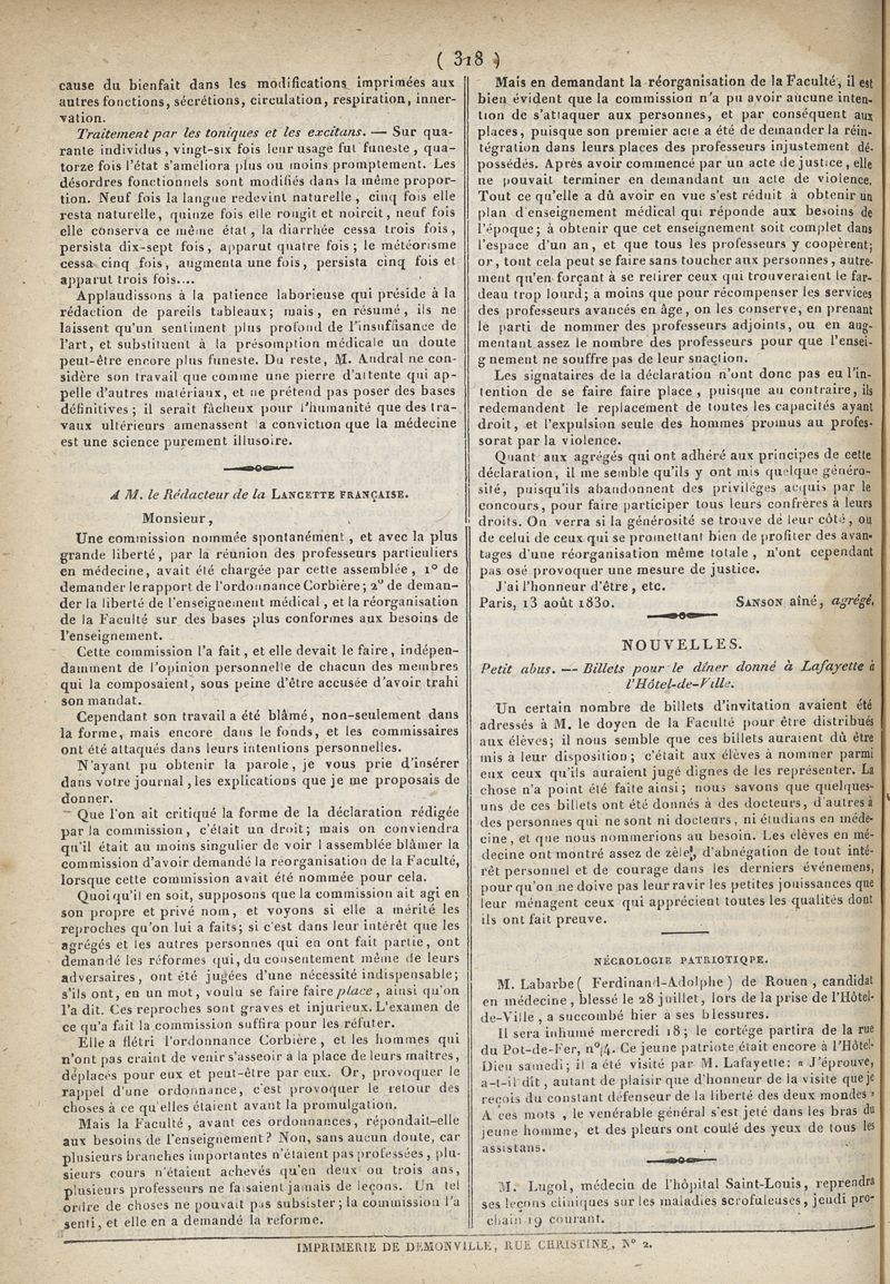 1830x03, (11 février 1830 - 2 octobre 1830), volume 3. -