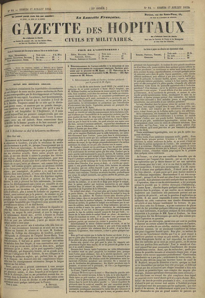 1852, tome 25e année. -