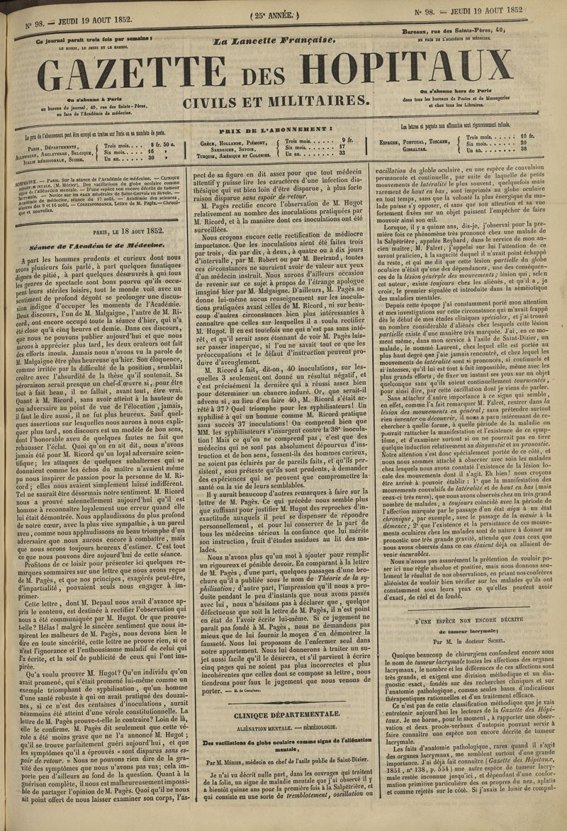 1852, tome 25e année. -