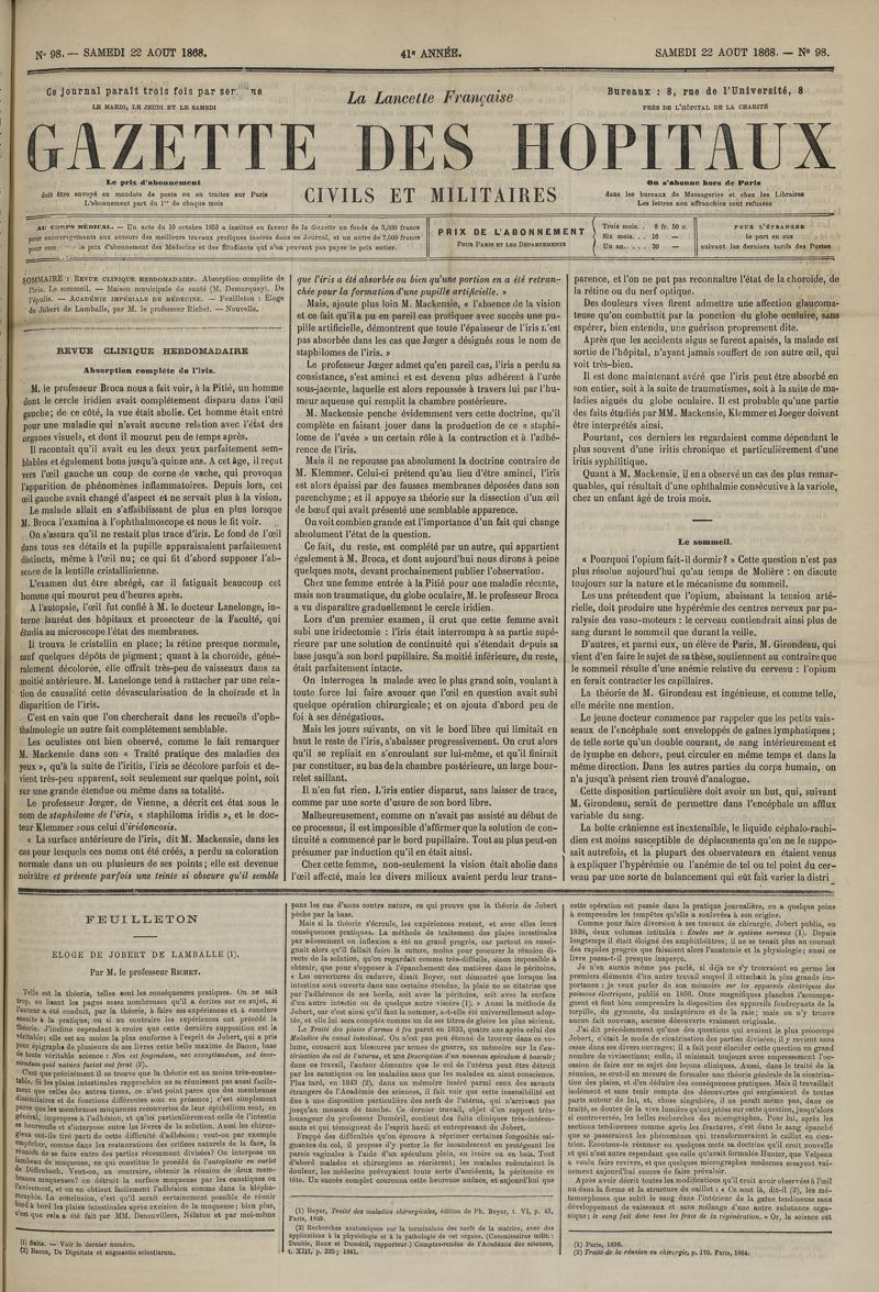 1868, tome 41e année. -