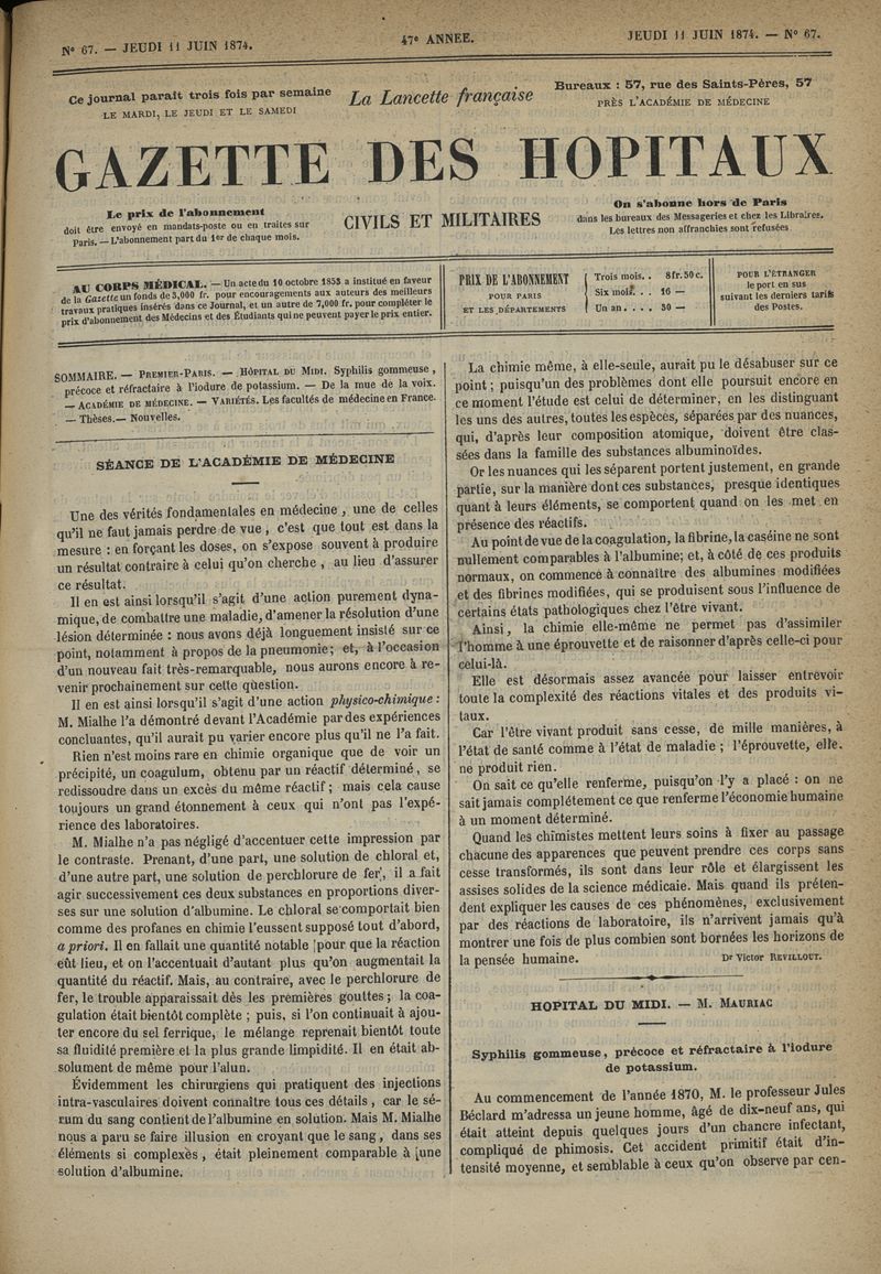 1874, tome 47e année. -