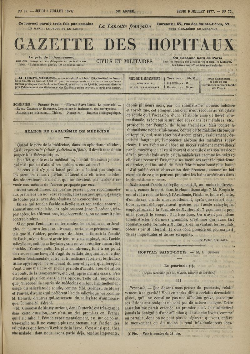 1877, tome 50e année. -