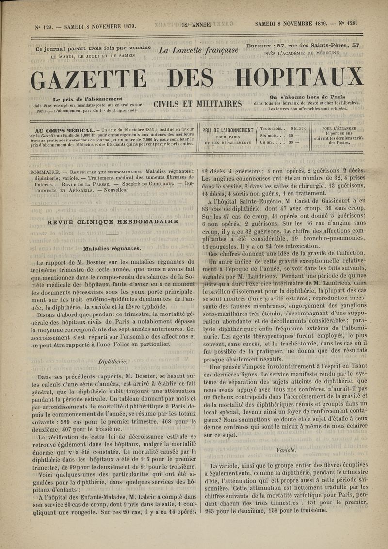 1879, tome 52e année. -