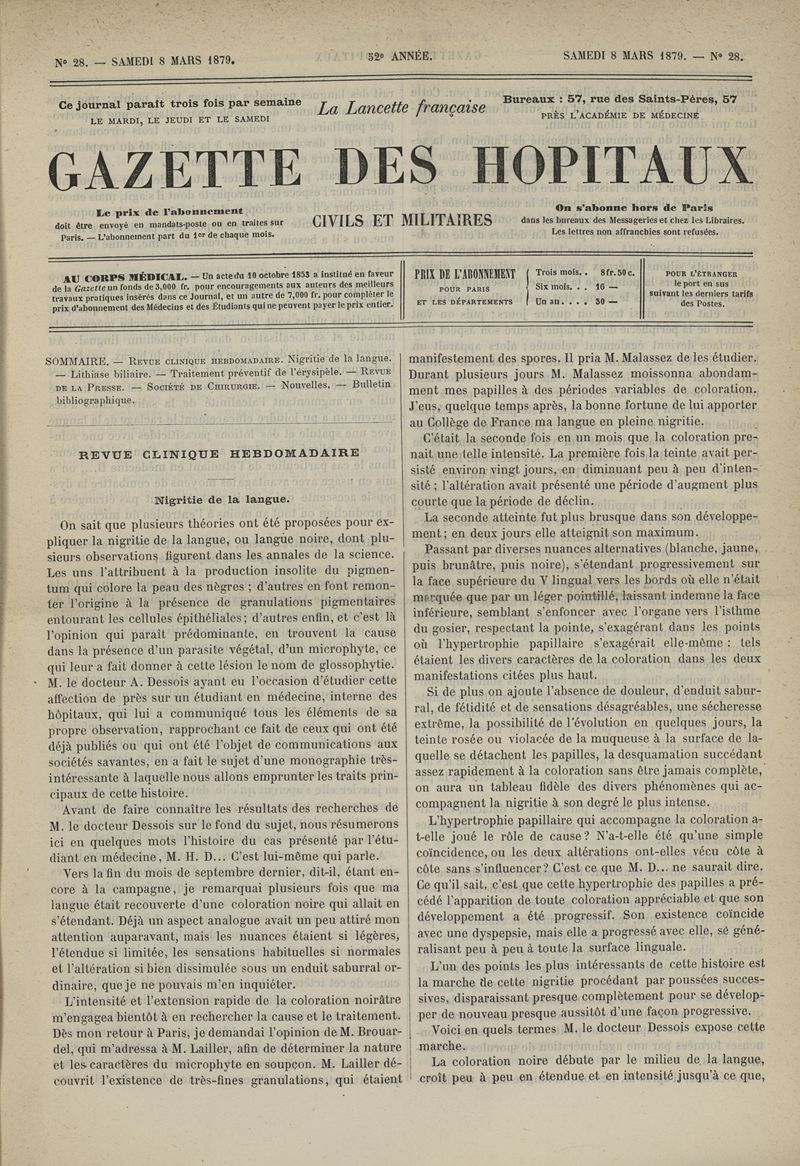 1879, tome 52e année. -