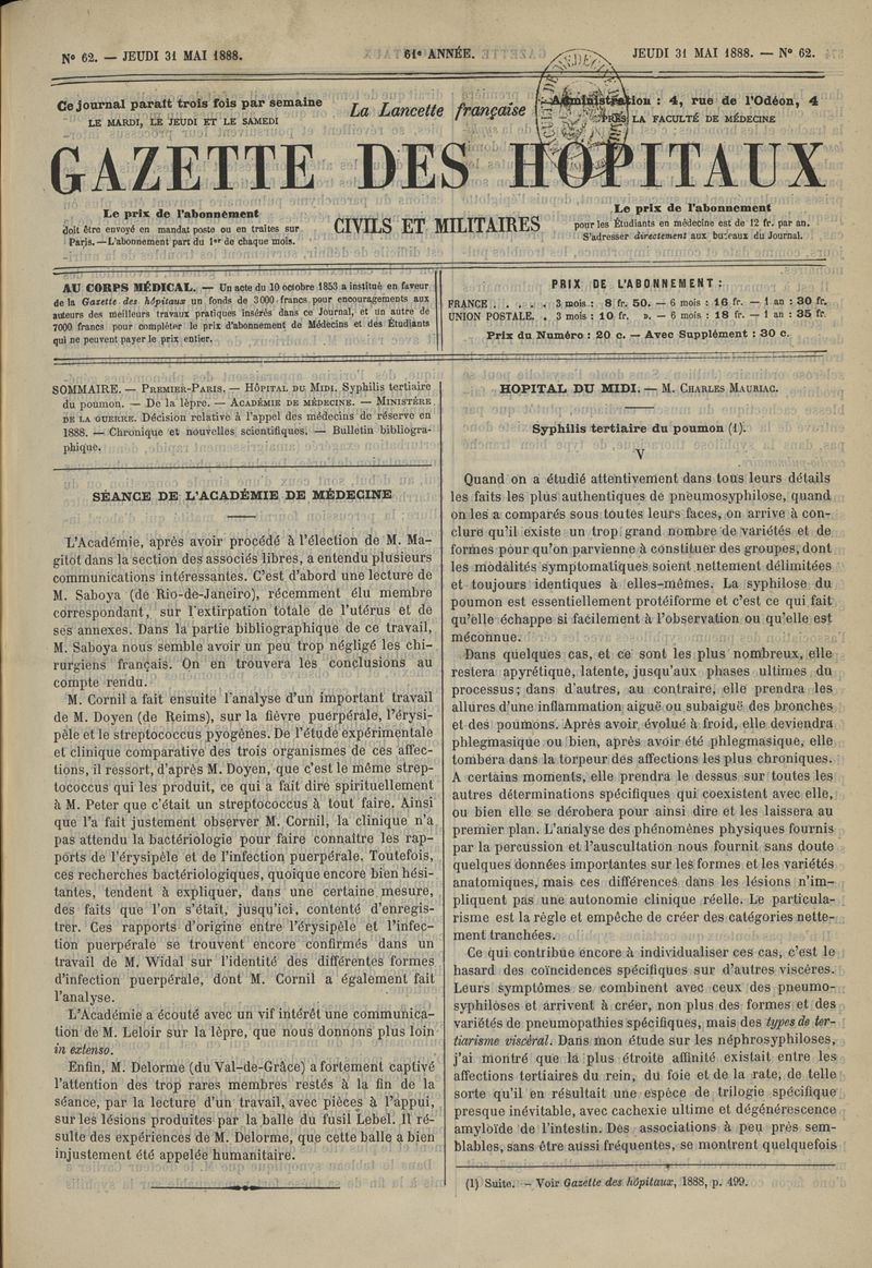 1888, tome 61e année. -