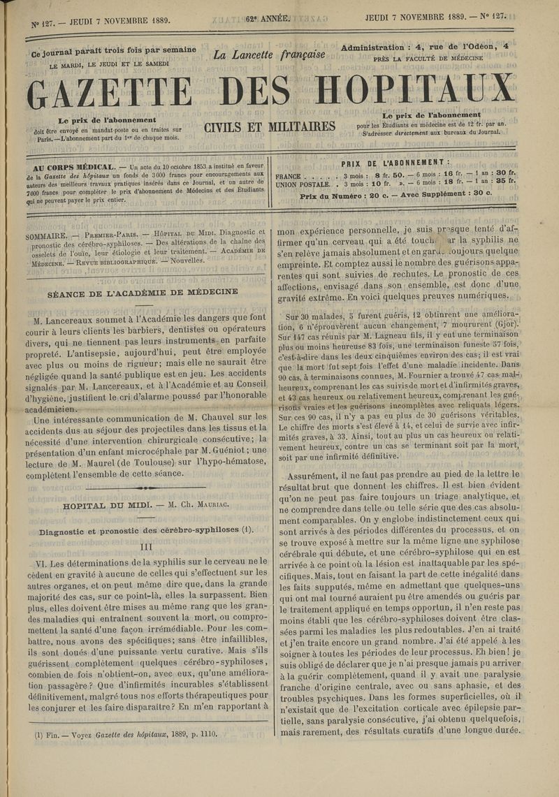 1889, tome 62e année. -