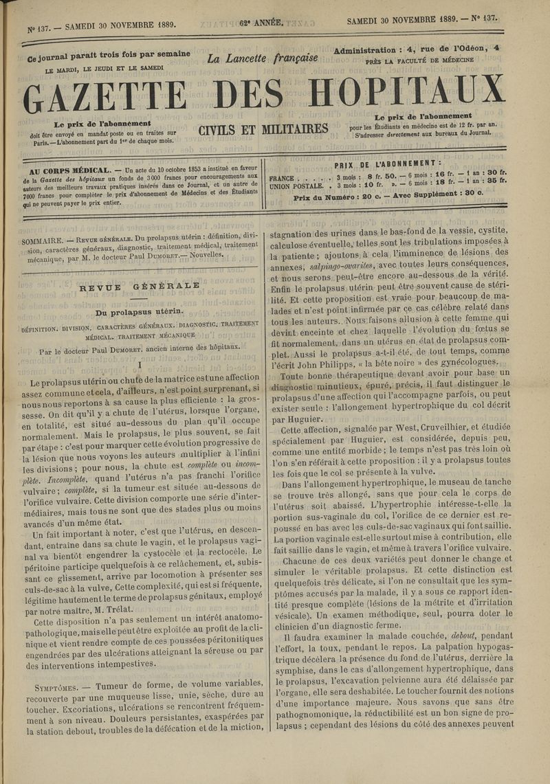 1889, tome 62e année. -