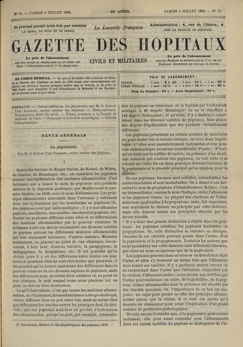 1889, tome 62e année. -