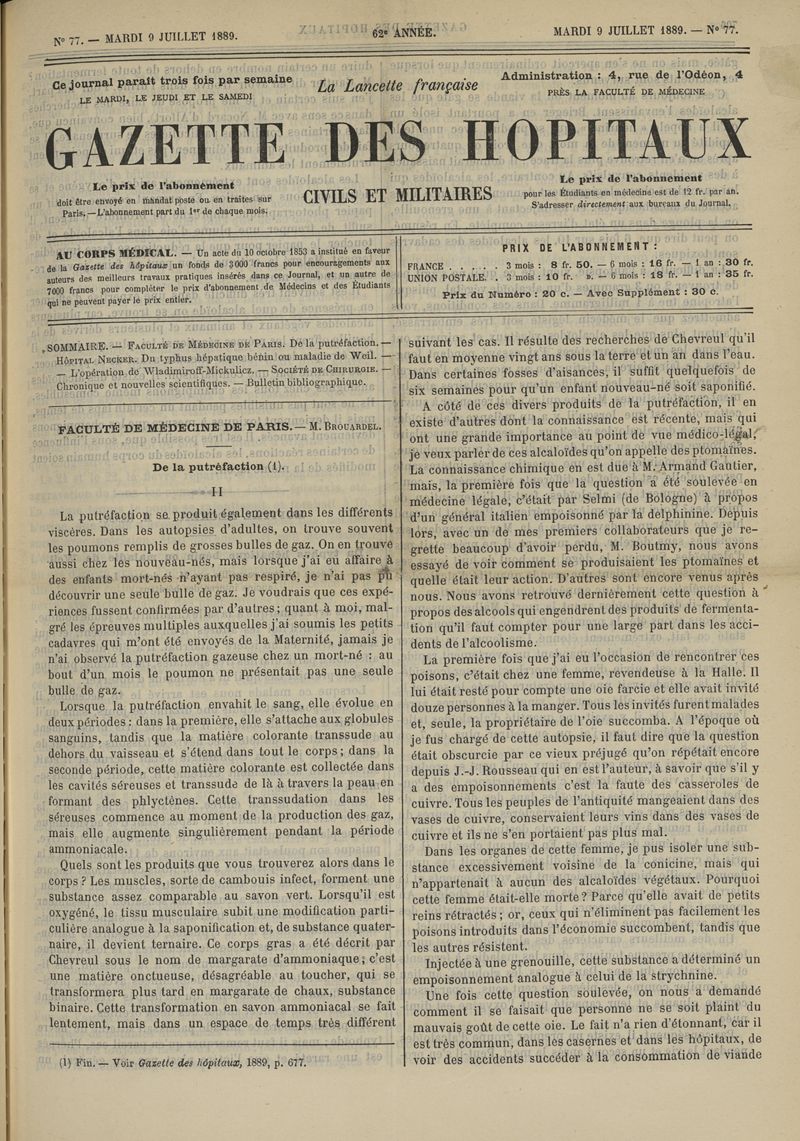 1889, tome 62e année. -