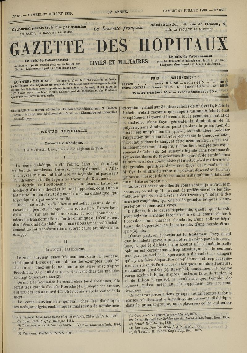 1889, tome 62e année. -