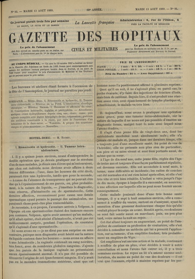 1889, tome 62e année. -