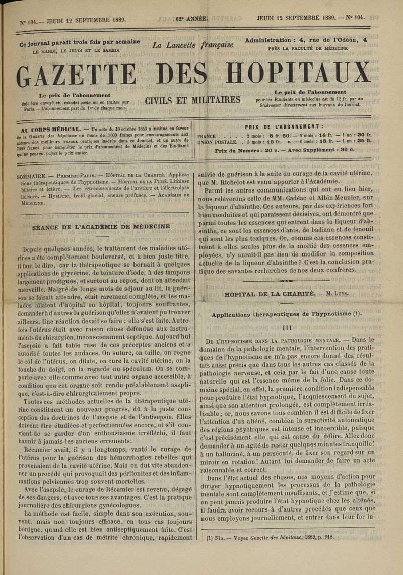 1889, tome 62e année. -
