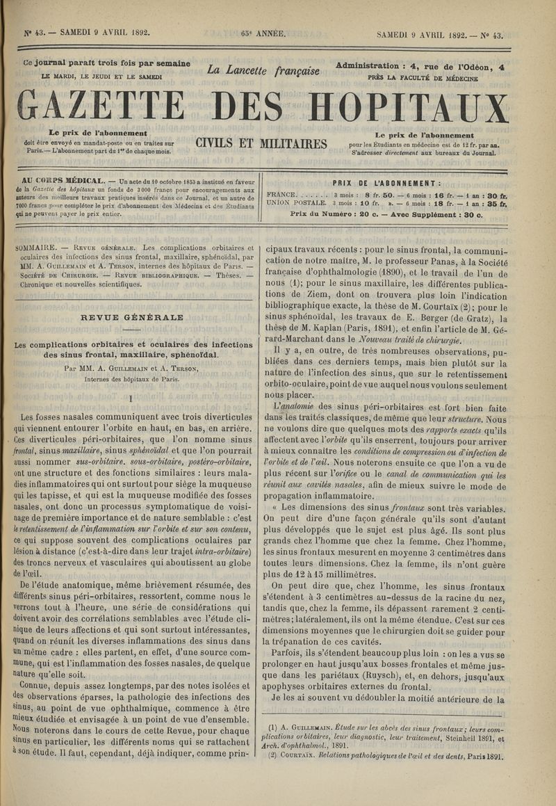 1892, tome 65e année. -