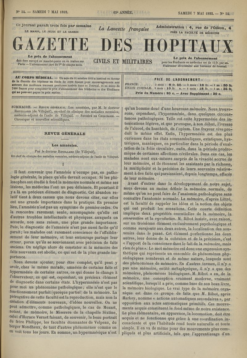 1892, tome 65e année. -
