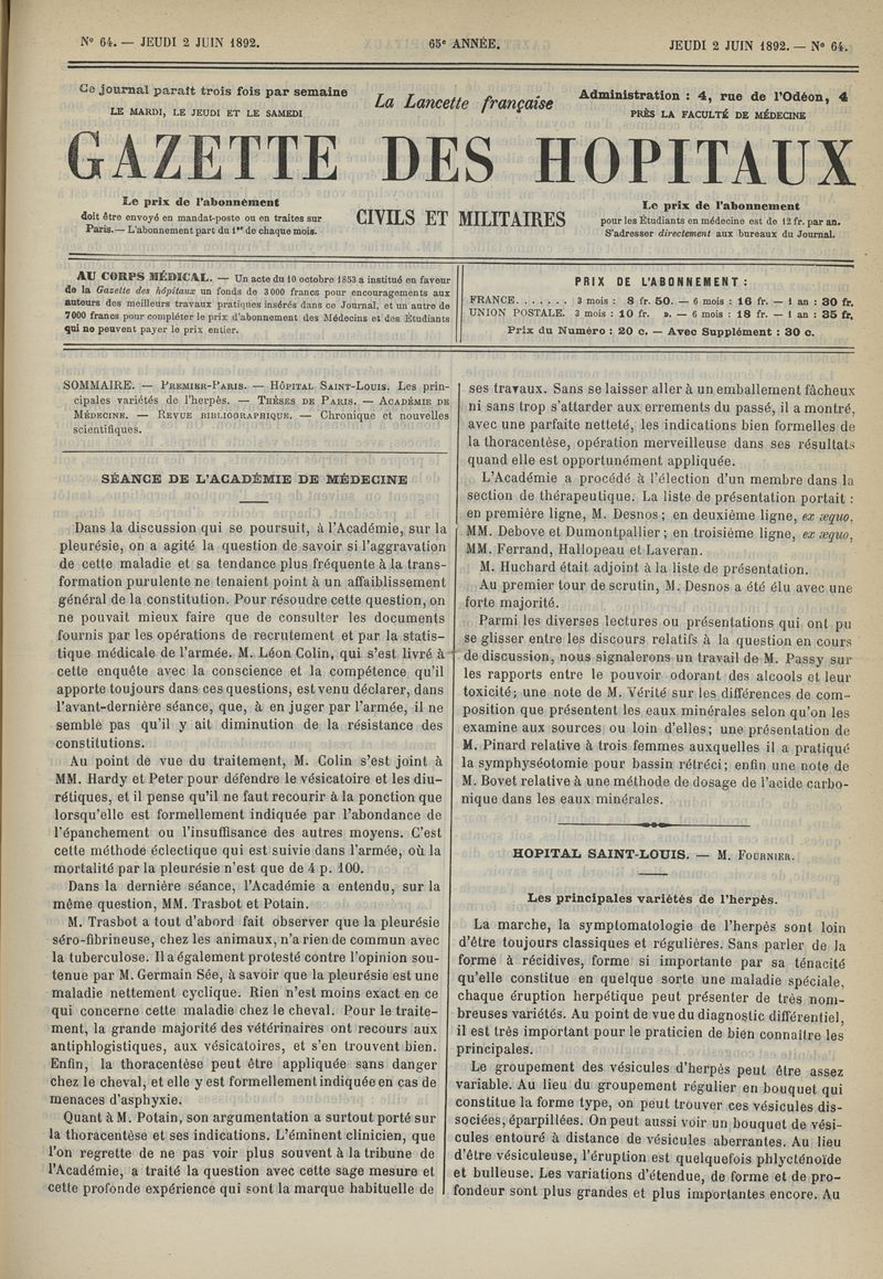1892, tome 65e année. -