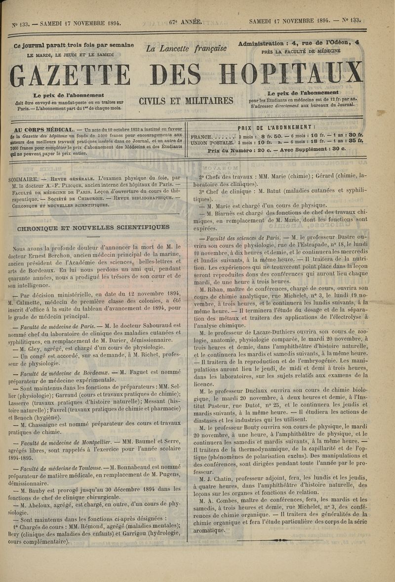 1894, tome 67e année. -